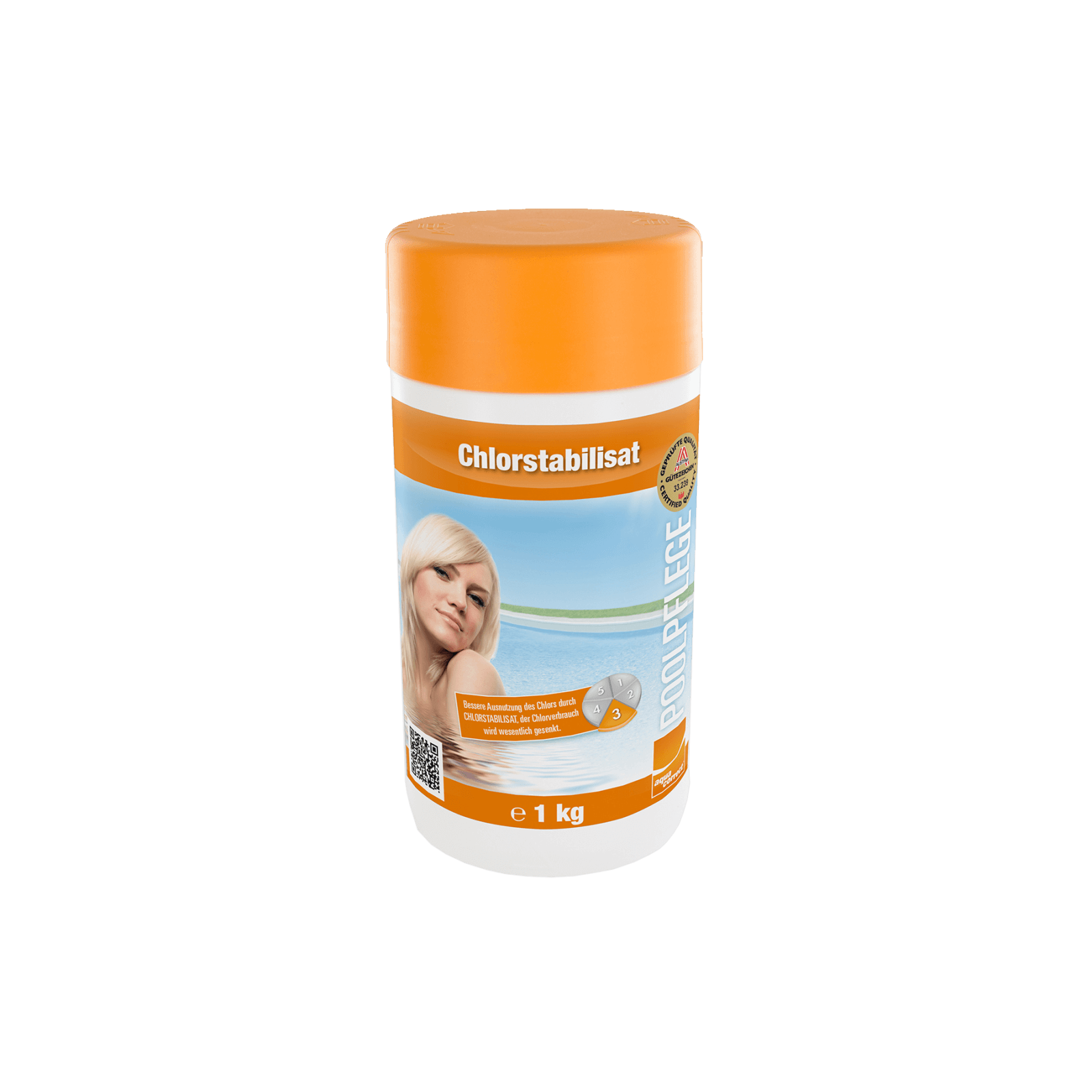A „Klórstabilizálónak” lassítják a klór oldódását, így a klórfogyás jelentősen csökken. Ezzel egyidejűleg a kellemetlen klórszag is csökken. A „Klórstabilizáló” nem befolyásolja a hatóanyagokat és korlátlanul tárolható.