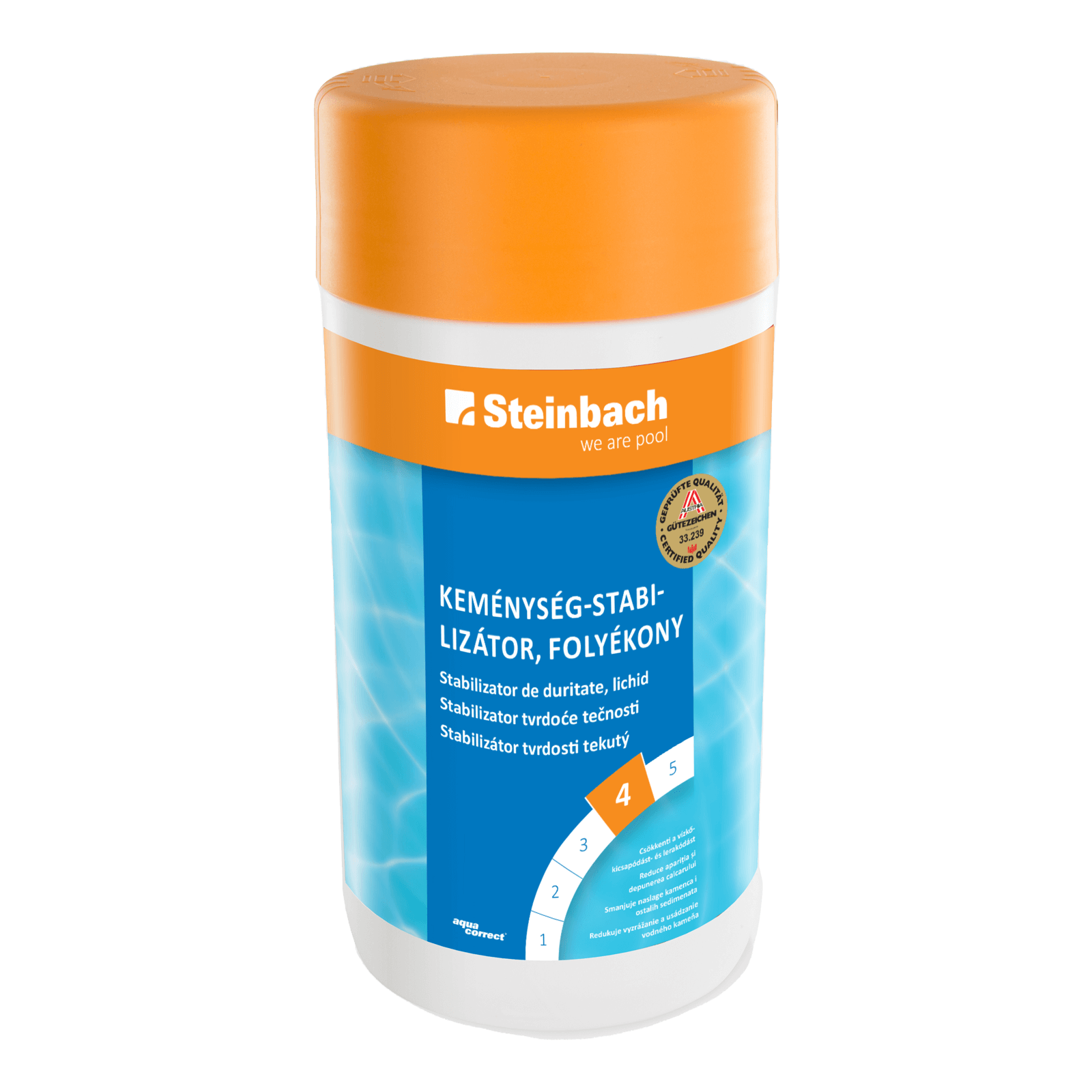 Vízápoló termék, ami hatékonyan hozzájárul a medencevíz optimális ásványi anyag tartalmához. A fürdővíz keménységét szabályzó folyadék, 1L-es kiszerelésben.