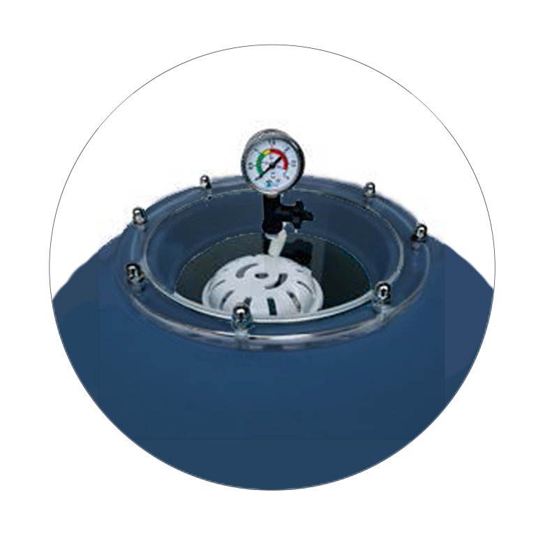 A felső diffúzor biztosítja a víz egyenletes eloszlását a homokágy tetején; ami sima, szabadon áramló teljesítményt biztosít. Precíziósan megtervezett öntisztító oldalsó csatornák a kiegyensúlyozott áramlás és visszamosás, valamint a könnyű szervizelhetőség érdekében.