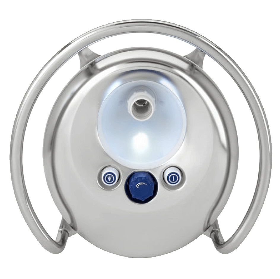 Egy befúvóval szerelve, amely minden irányba 60 fokos szögig forog. Integrált LED világítás (fehér vagy színes), ocionálisan rendelhető rozsdamentes kapaszkodóval.