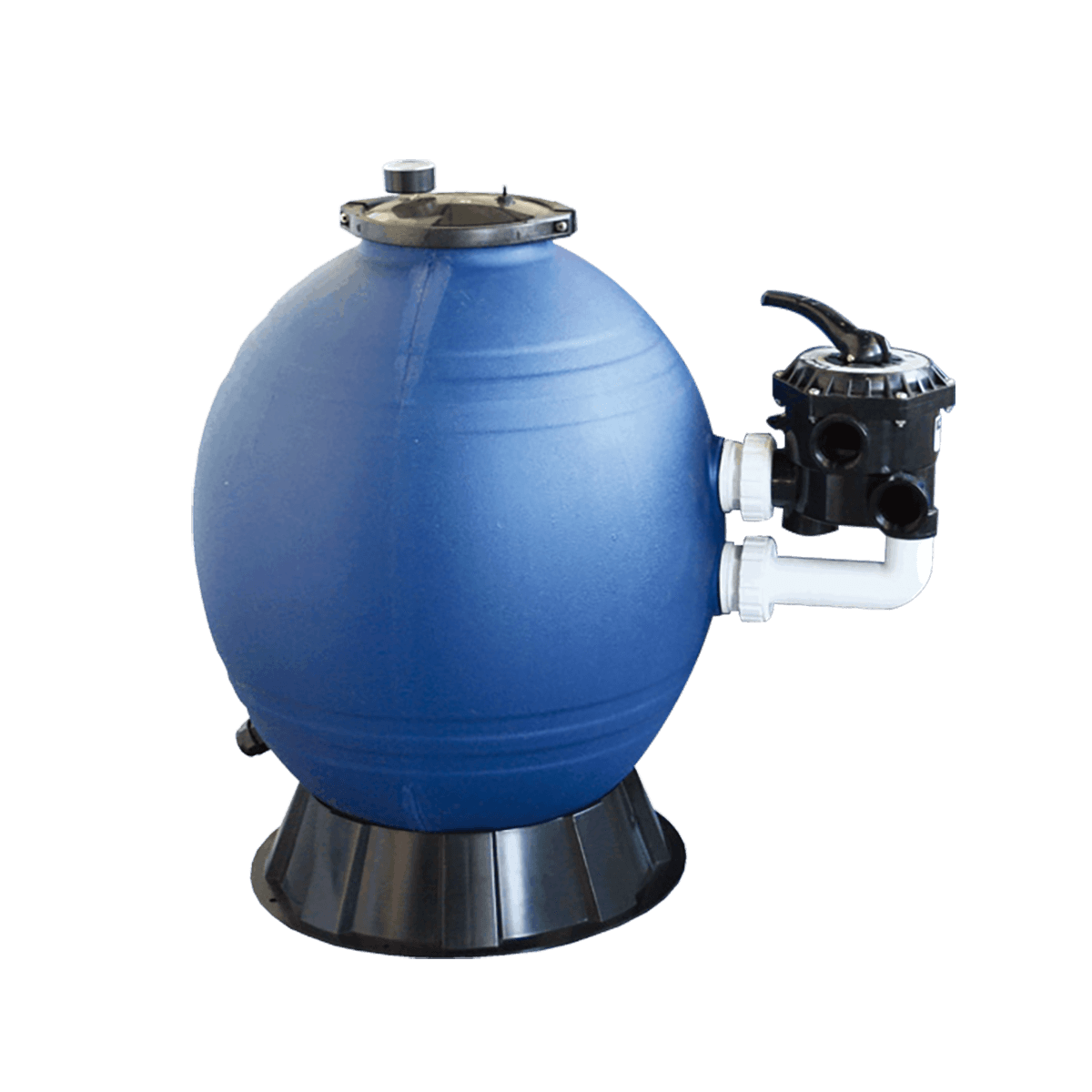 Bilincses rögzítésű 4 vagy 6-utas TOP váltószeleppel szerelt. A 360 fokban forgatható váltószelepnek köszönhetően könnyen telepíthető Basic szűrőtartály magán medencékhez.