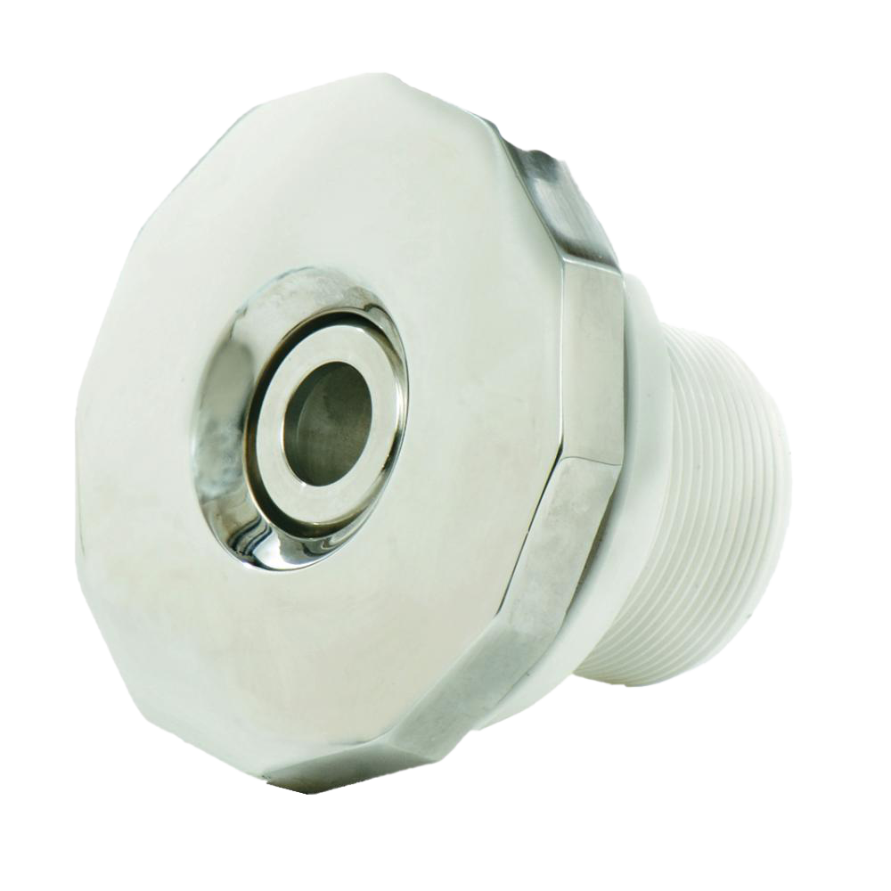 Minőségi ABS műanyagból, rozsdamentes acél előlappal készült medence befúvó, az optimális vízforgatáshoz. Oldalfali befúvó fóliás medencékhez, külső menetes csatlakozóval.