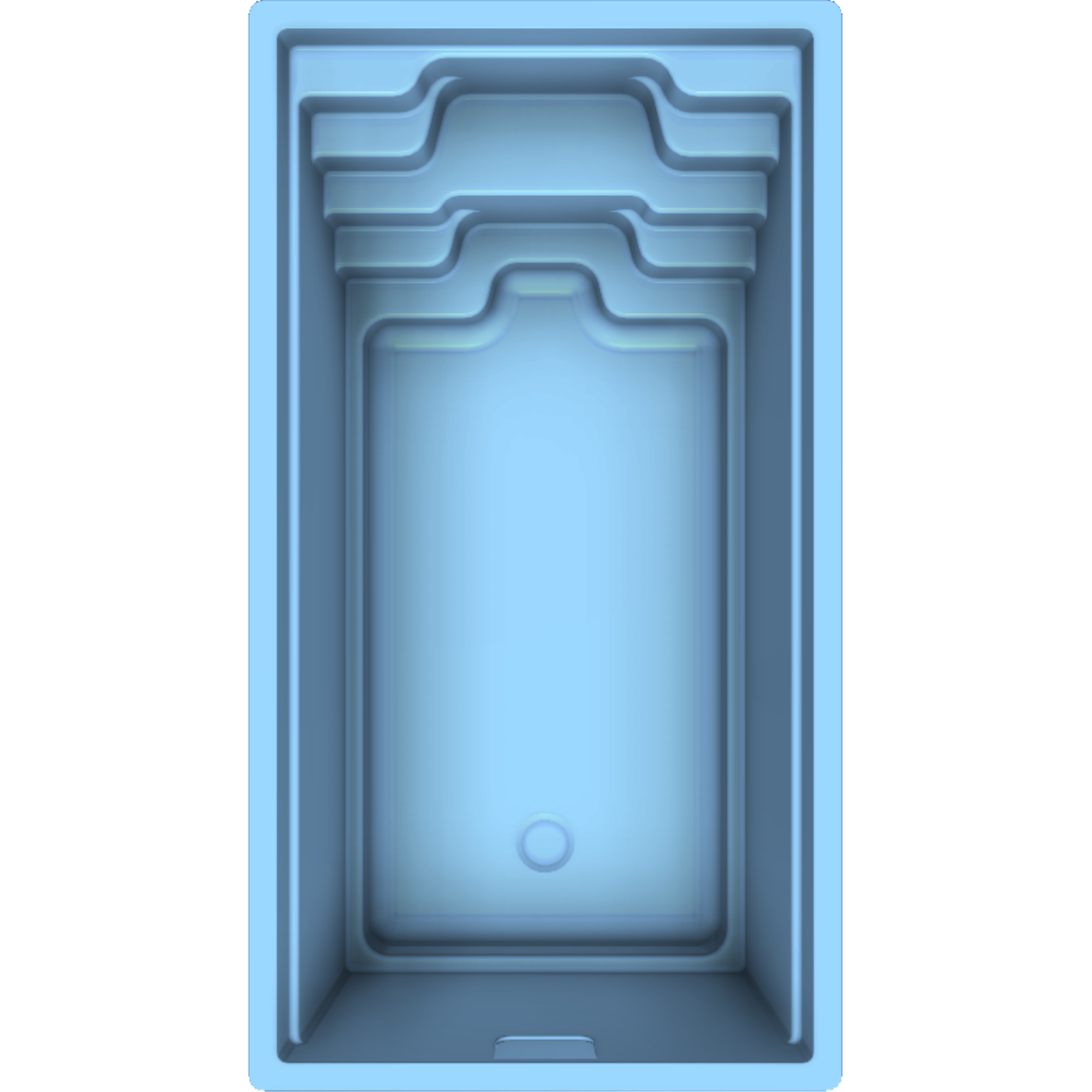 1-2-3. réteg: egy 3 dimenziós multicolor medencefelület, mely egy fröccstechnológiával egymás utáni rétegben felvitt Gelcoat (első poliészter gélréteg) réteg