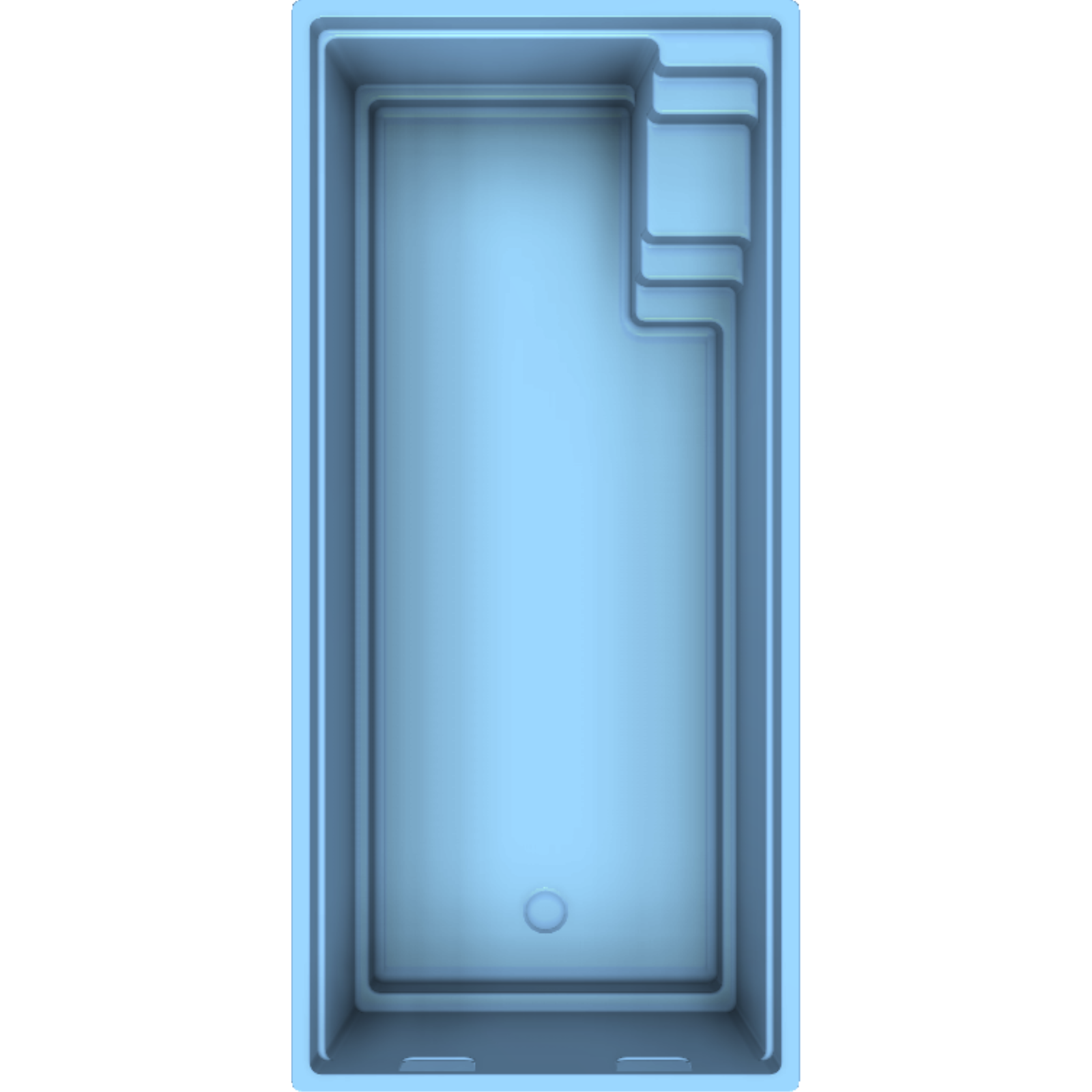 -szögletes medence 5 fokos lépcsősorral és ülőpaddal a bal sarokban