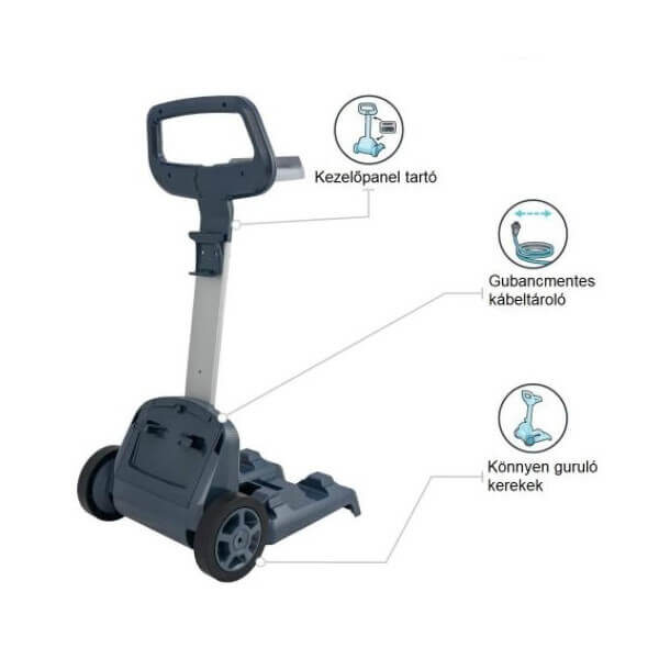 Praktikus és egyúttal védi a medencetisztító robotot, hiszen biztosítja a megfelelő tárolását a tápegységnek, a robotnak és a kábelnek.