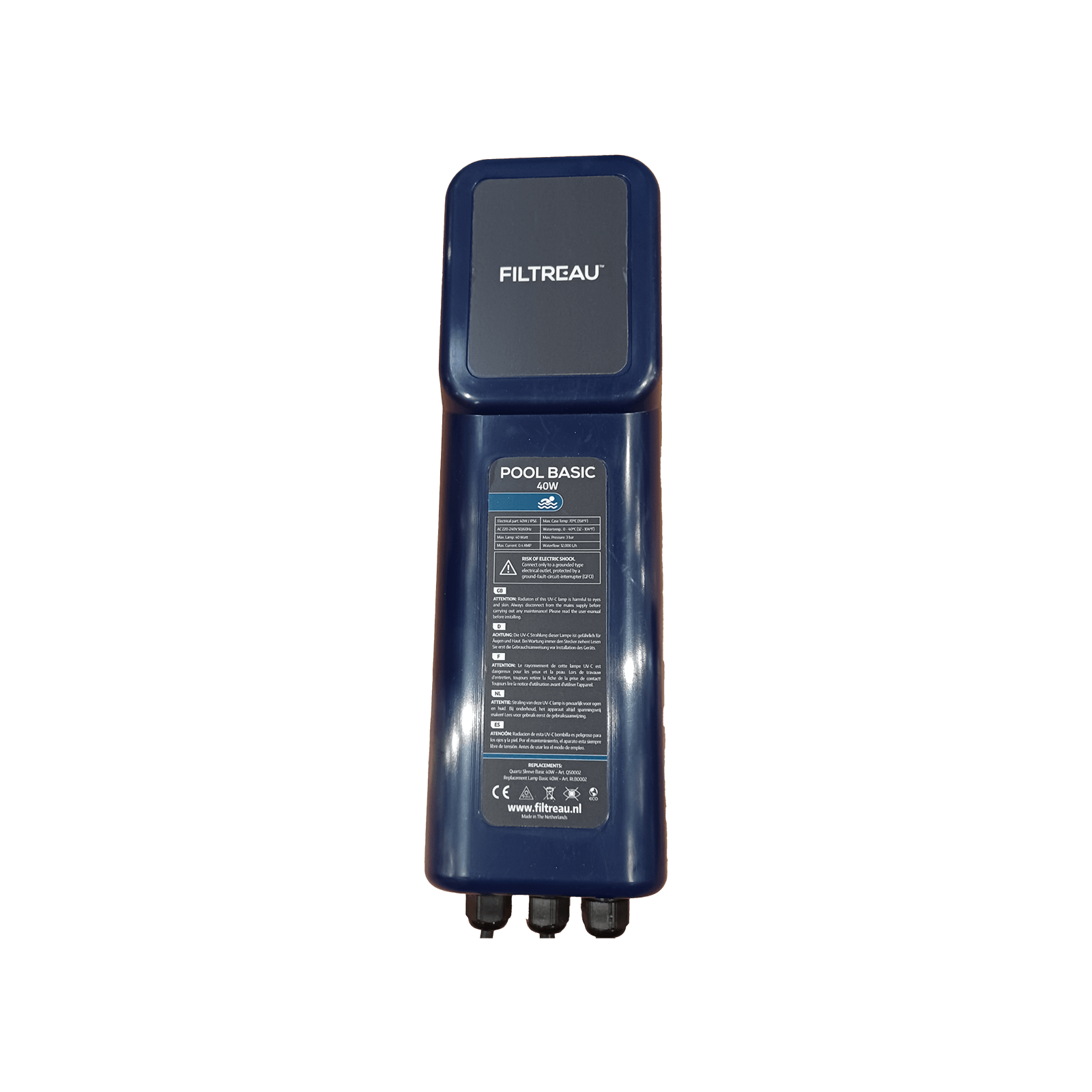 Rákötve az elektromoshálozatra, ez a készülék biztosítja az áramot a Filtreau Basic típusú UV fénnyel fertőtlenítő lámpának.