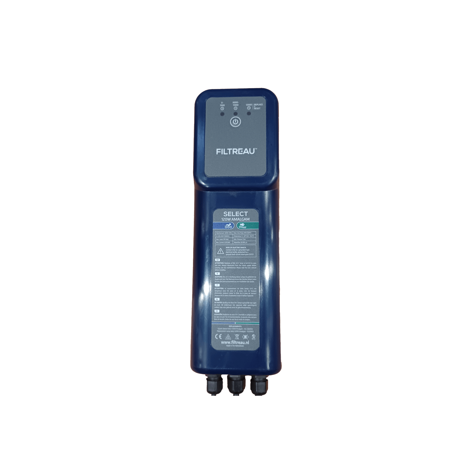 Rákötve az elektromoshálozatra, ez a készülék biztosítja az áramot a Filtreau Select típusú UV fénnyel fertőtlenítő lámpának.