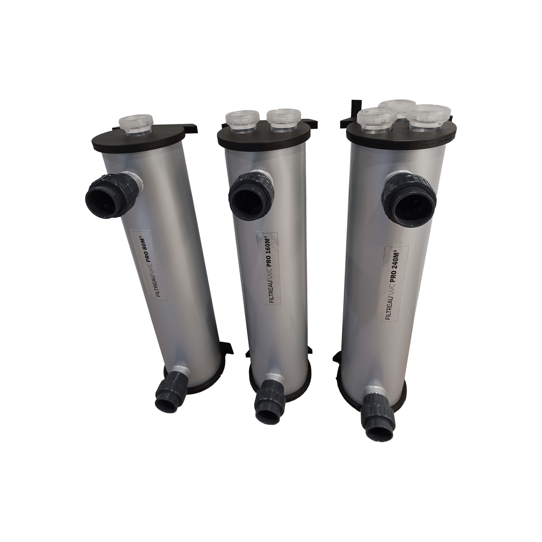 Prémium minőségi UV-C PRO fertőtlenítő közepes és nagy medencékhez. Egy házban 1, 2 vagy 3 UV-C cső van, egyenként 80W teljesítménnyel, 80-240m3-es medence tartományban ajánlva a készülékeket.