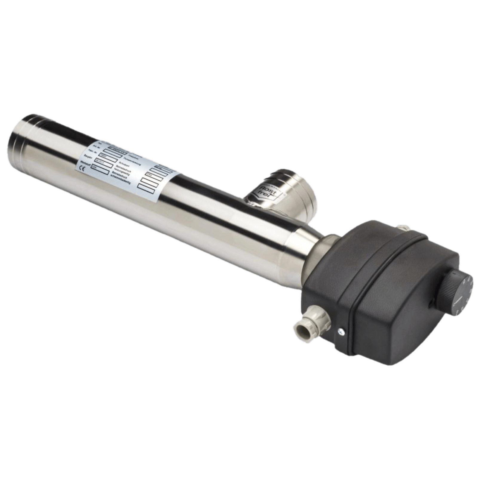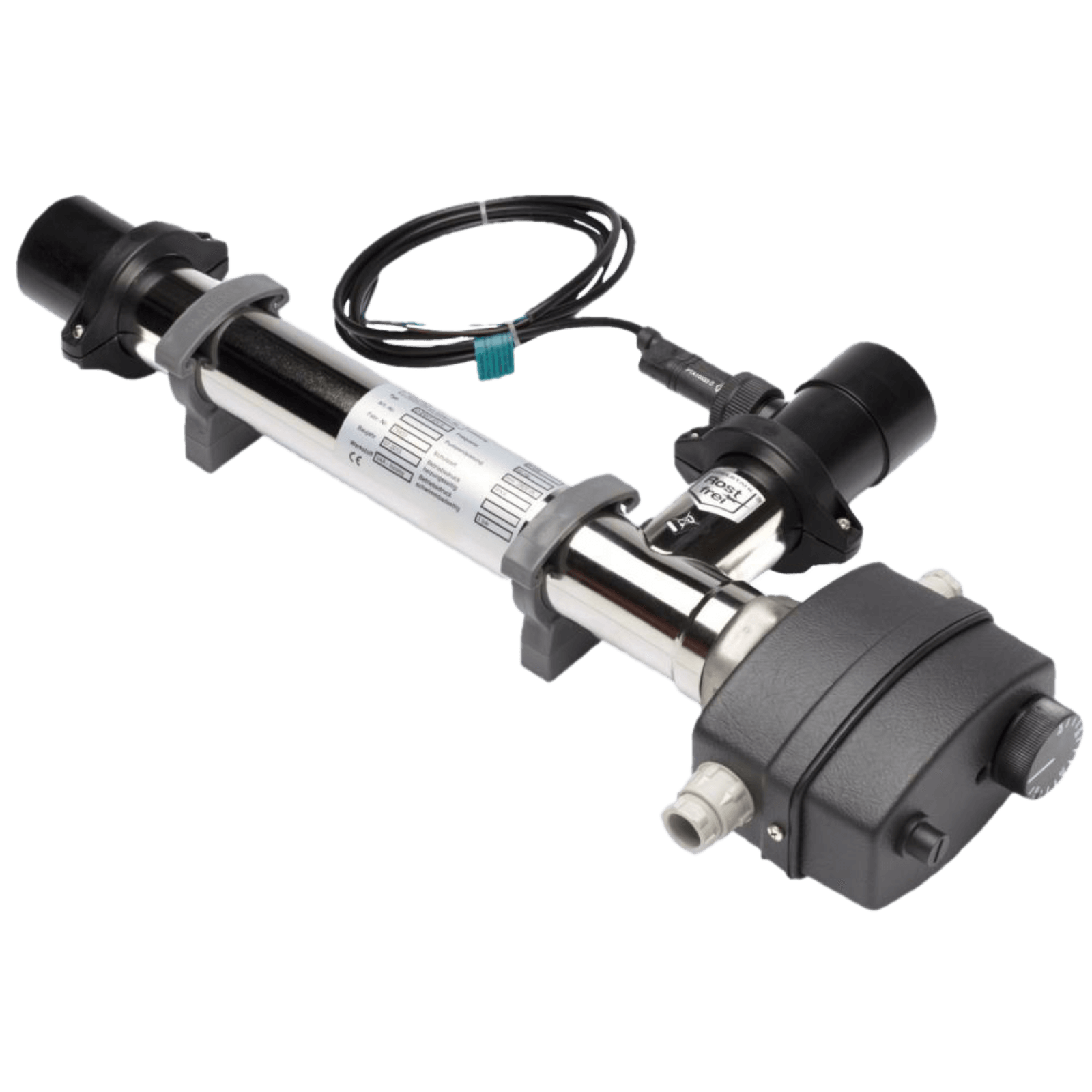 Elektromos fűtőpatron a D-EWT-L termékcsaládból, a levegő fűtésére, SPA rendszerek mellé ajánlott. 30-90 °C-os szabályzó termosztáttal, AISI304 rozsdamentes acélból készült, ami hosszú élettartamot és magas minőséget biztosít. Rendkívül korrózióálló fűtőrudakkal rendelkezik, rendkívül sokoldalúan alkalmazható. Egy légfúvóval kombinálva 2″ IG aljzatkombinációval vagy NW 60-as gumitömlővel csatlakoznak a csővezetékhez.