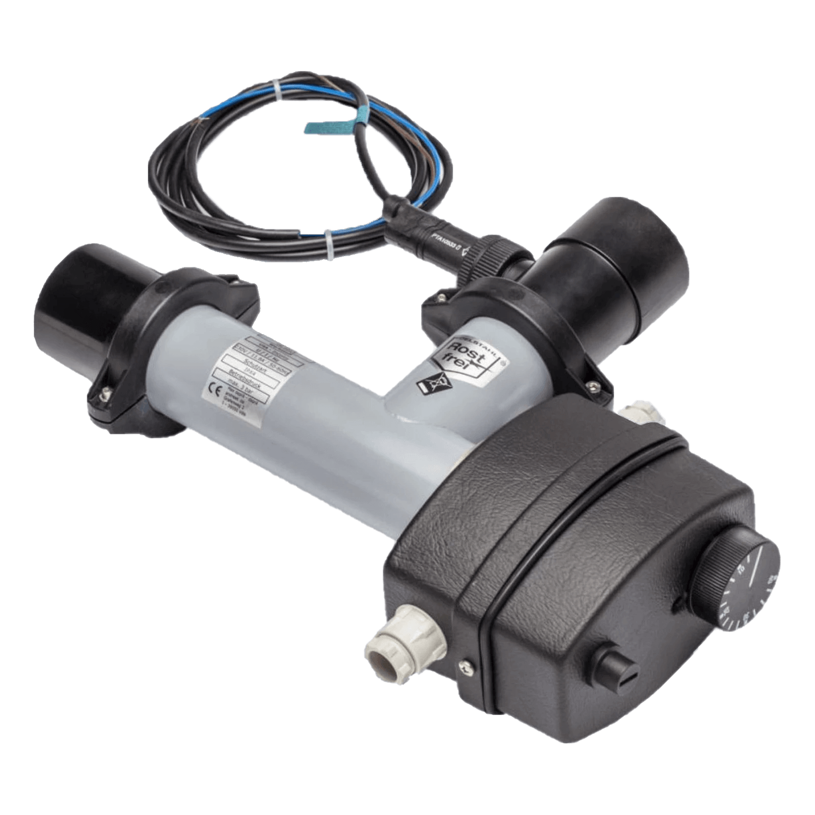 Elektromos hőcserélők a D-EWT Neo termékcsaládból, nem gyulékony műanyag házzal, nyomásálló burkolattal, a fűtőelemek Incoloy 825 anyagbó készülnek. 0-40 °C-os szabályzó termosztáttal, 55 °C-os biztonsági termosztáttal, lassú víz elleni védelemre szolgáló áramlásszabályozóval, rendkívül korrózióálló fűtőrudakkal, rendkívül sokoldalúan alkalmazhatók – úszómedencék, pezsgőfürdők és hasonló létesítmények fűtésére.
