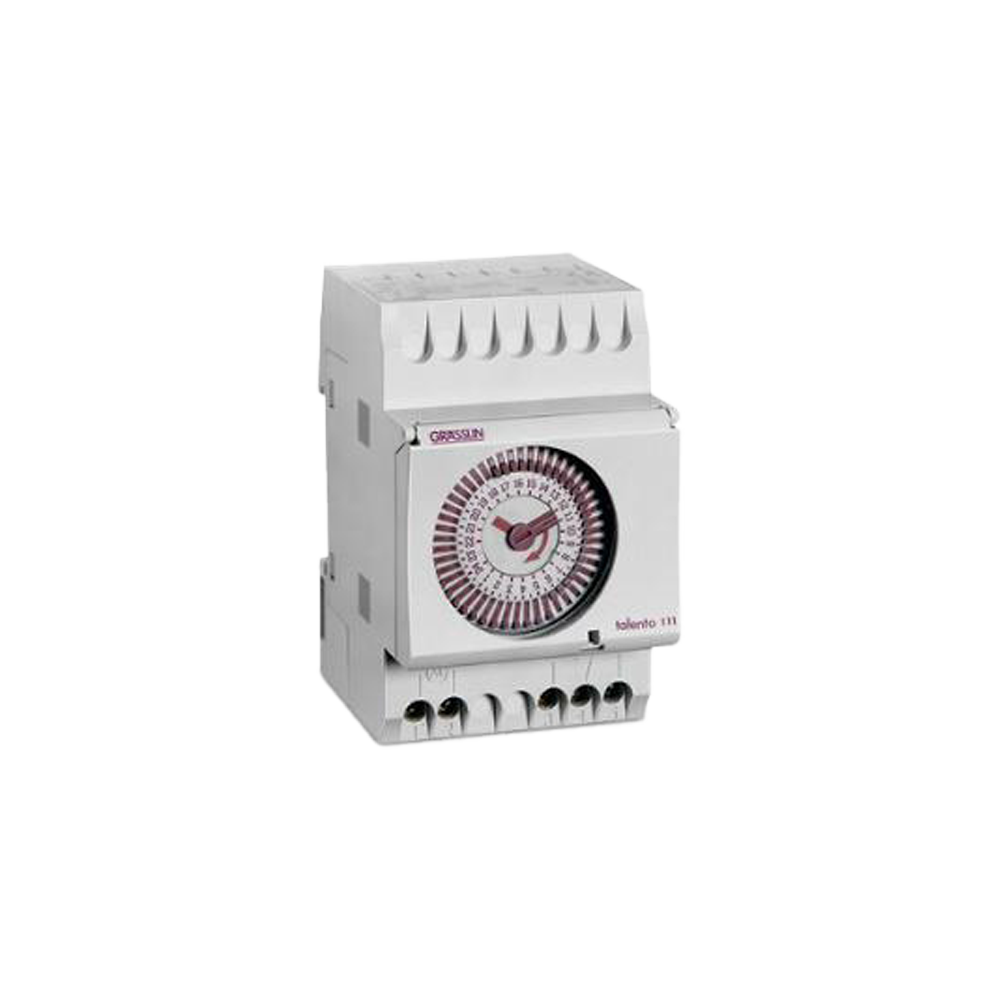 A Grässlin ház analóg DIN sínes időkapcsolói lehetővé teszik a napi programban történő kapcsolási parancsok kiadását.