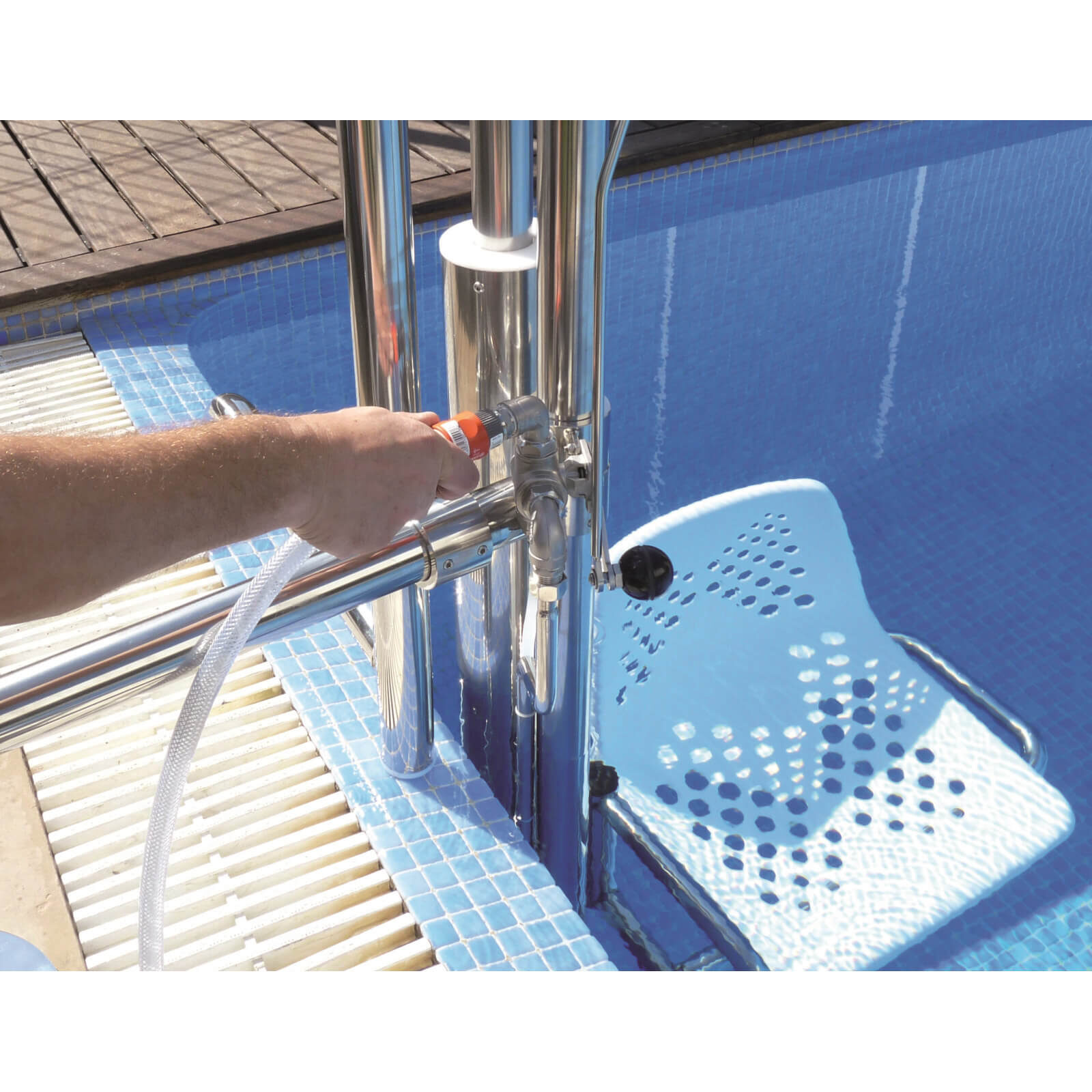 Egy lift, amely hidraulikus mechanizmusokat használ, hogy segítsen az embereknek—különösen a mozgáskorlátozottaknak—biztonságosan be- és kiszállni az úszómedencéből. Ezek a liftek elengedhetetlenek az akadálymentesség biztosításához.