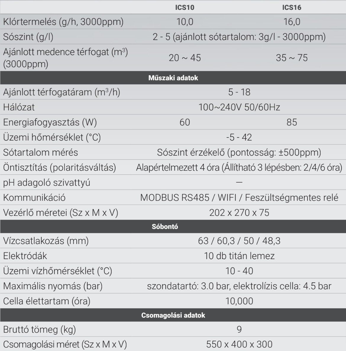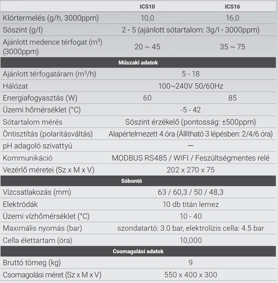 – Sószint: 2 – 5 g/l (ajánlott sótartalom: 3 g/l – 3000ppm)