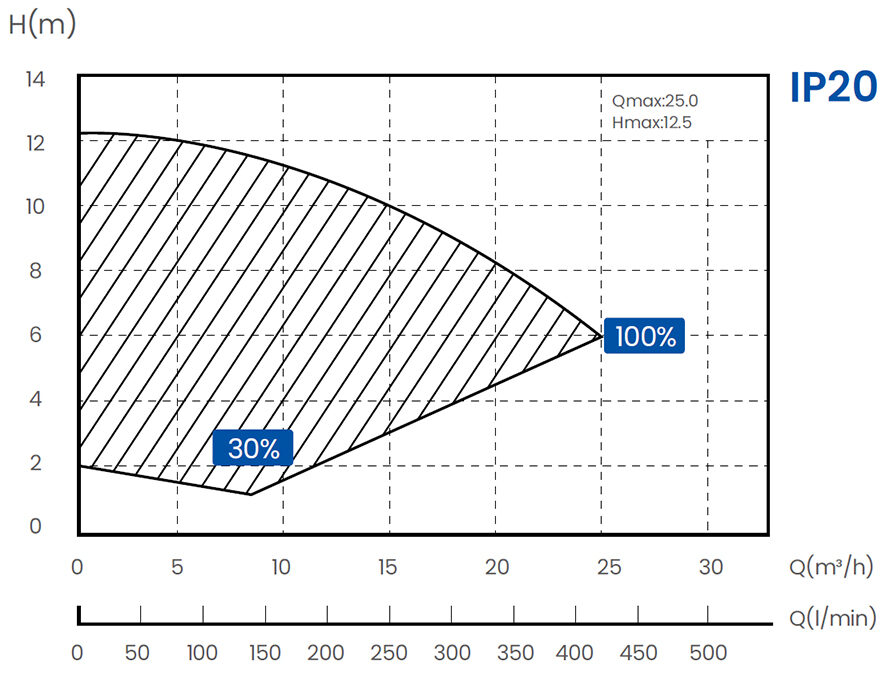 – Térfogatáram maximum 8m: 17,9 m3/h