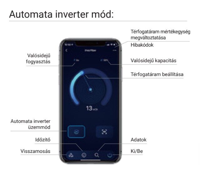 Két féle vezérlő mód közül választhatunk: Manuális és automata inverter üzemmód. Automata inverter üzemmódban megadjuk a térfogatáramot, és a szivattyú ehhez igazítja a teljesítményét. A készülék kijelzi a valós idejű fogyasztást és egyéb fontos adatokat. Telefonon keresztül elérhető az időzítő, visszamosás, ki- és bekapcsolás funkció is.