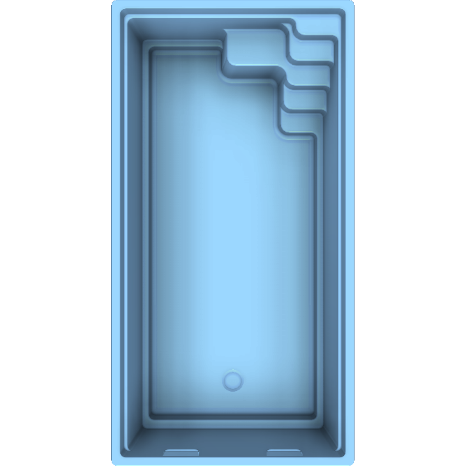 – szögletes medence 5 fokos lépcsősorral, ülőpaddal a rövid oldalon