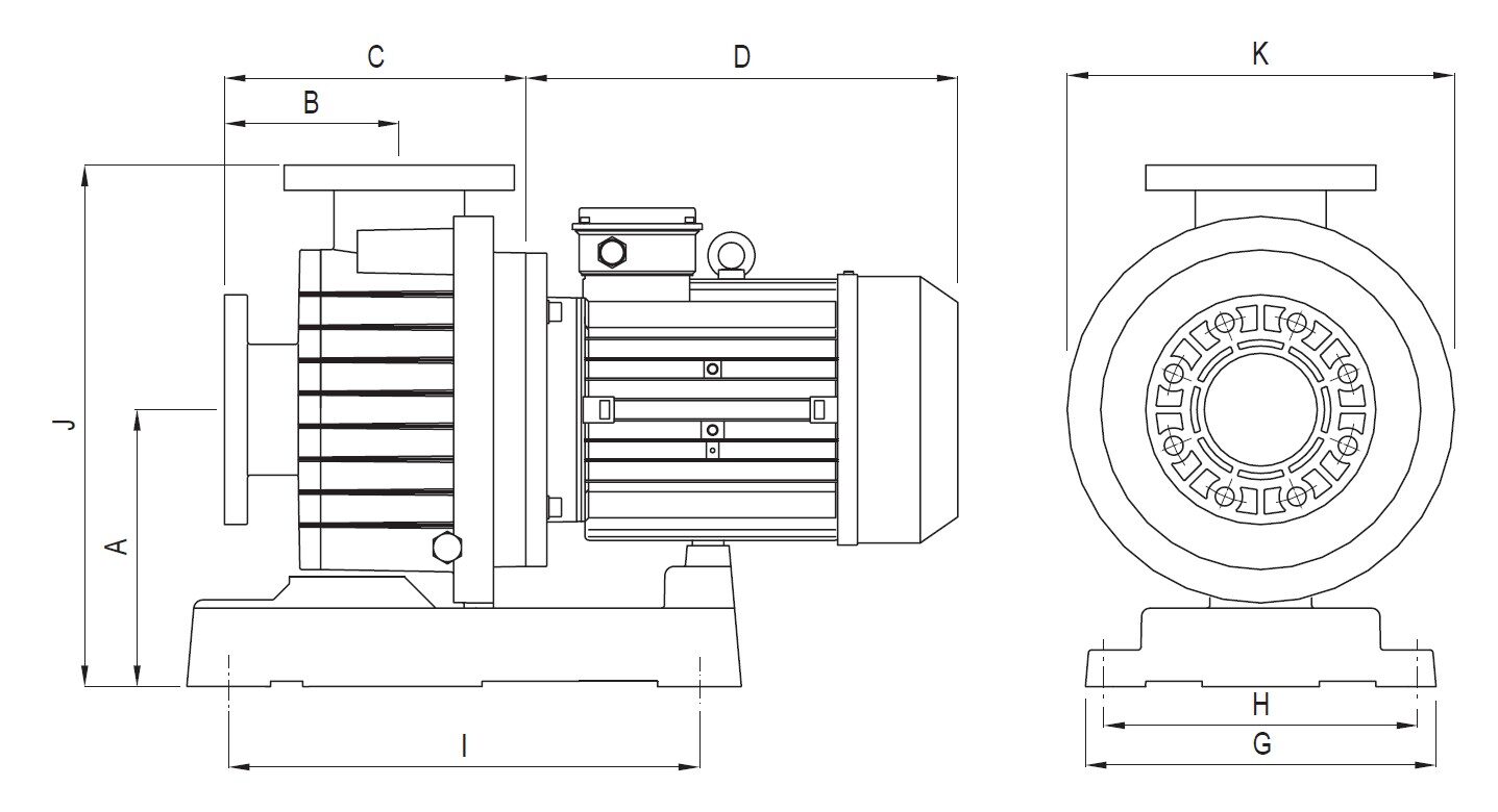 – Üvegszállal erősített polipropilén ház és járókerék. Csatlakozások DN100 (Karima nem tartozék)