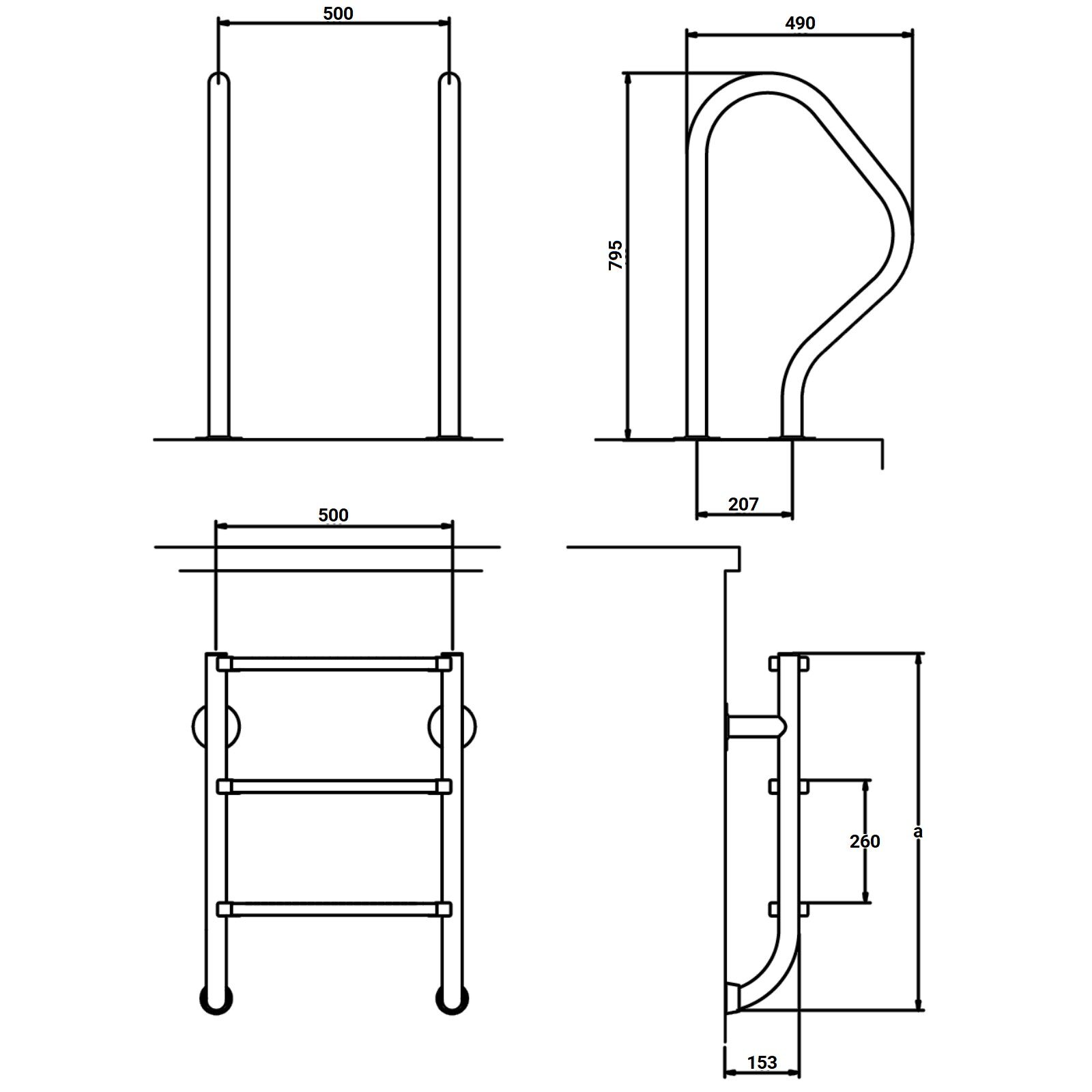 Ezek a létrák elsősorban monolit, vízzáró beton medencékhez lettek tervezve. A létra rögzítése a medencetest belső falába történik csavarokkal. Fontos megjegyezni, hogy fóliás burkolatú vagy kerámia medencéknél a csavarozás érintkezhet a vízzáró felülettel, és növelheti a vízvesztés kockázatát. Ezért javasoljuk ezen típusú medencék esetén figyelmesen eljárni.