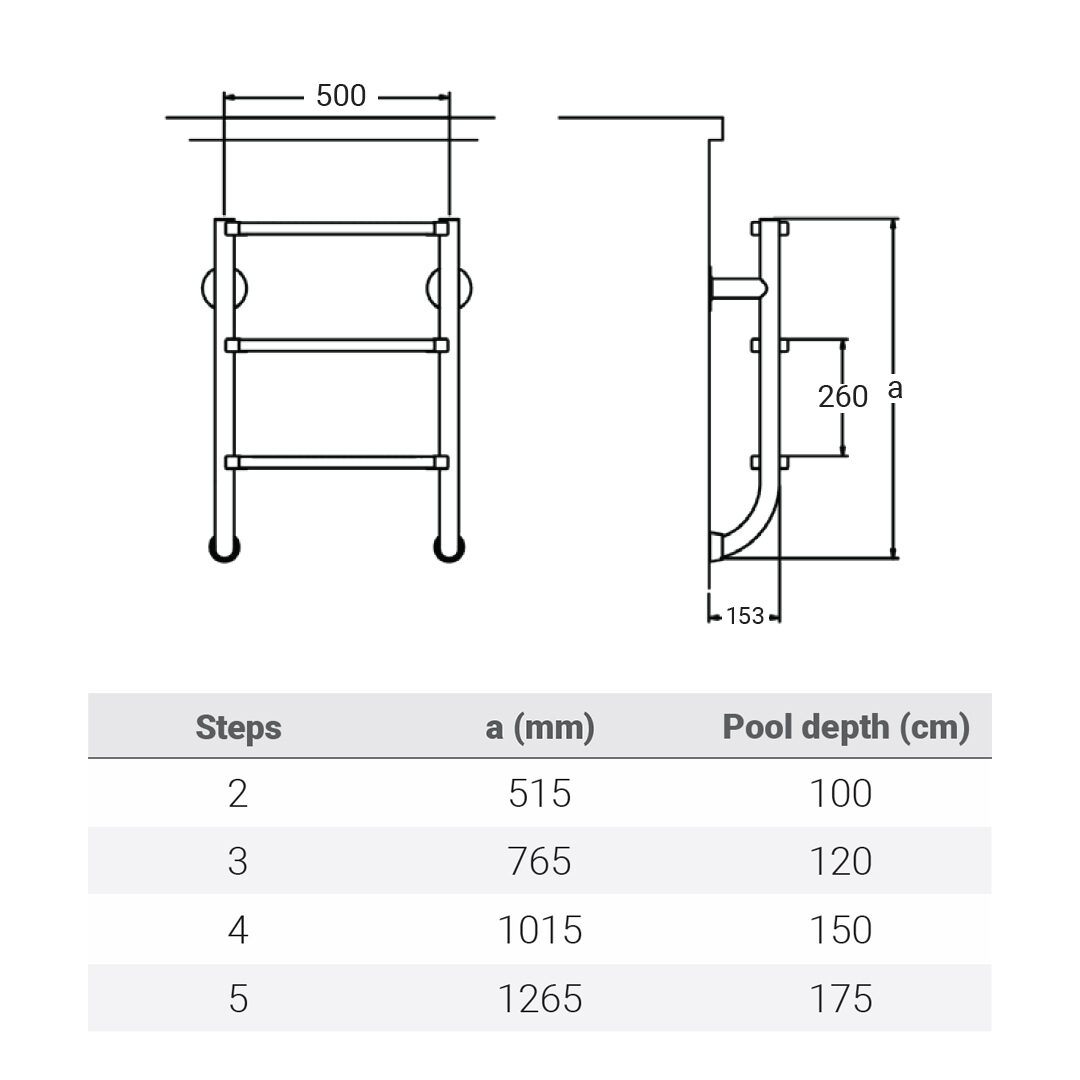 Ezek a létrák elsősorban monolit, vízzáró beton medencékhez lettek tervezve. A létra rögzítése a medencetest belső falába történik csavarokkal. Fontos megjegyezni, hogy fóliás burkolatú vagy kerámia medencéknél a csavarozás érintkezhet a vízzáró felülettel, és növelheti a vízvesztés kockázatát. Ezért javasoljuk ezen típusú medencék esetén figyelmesen eljárni.