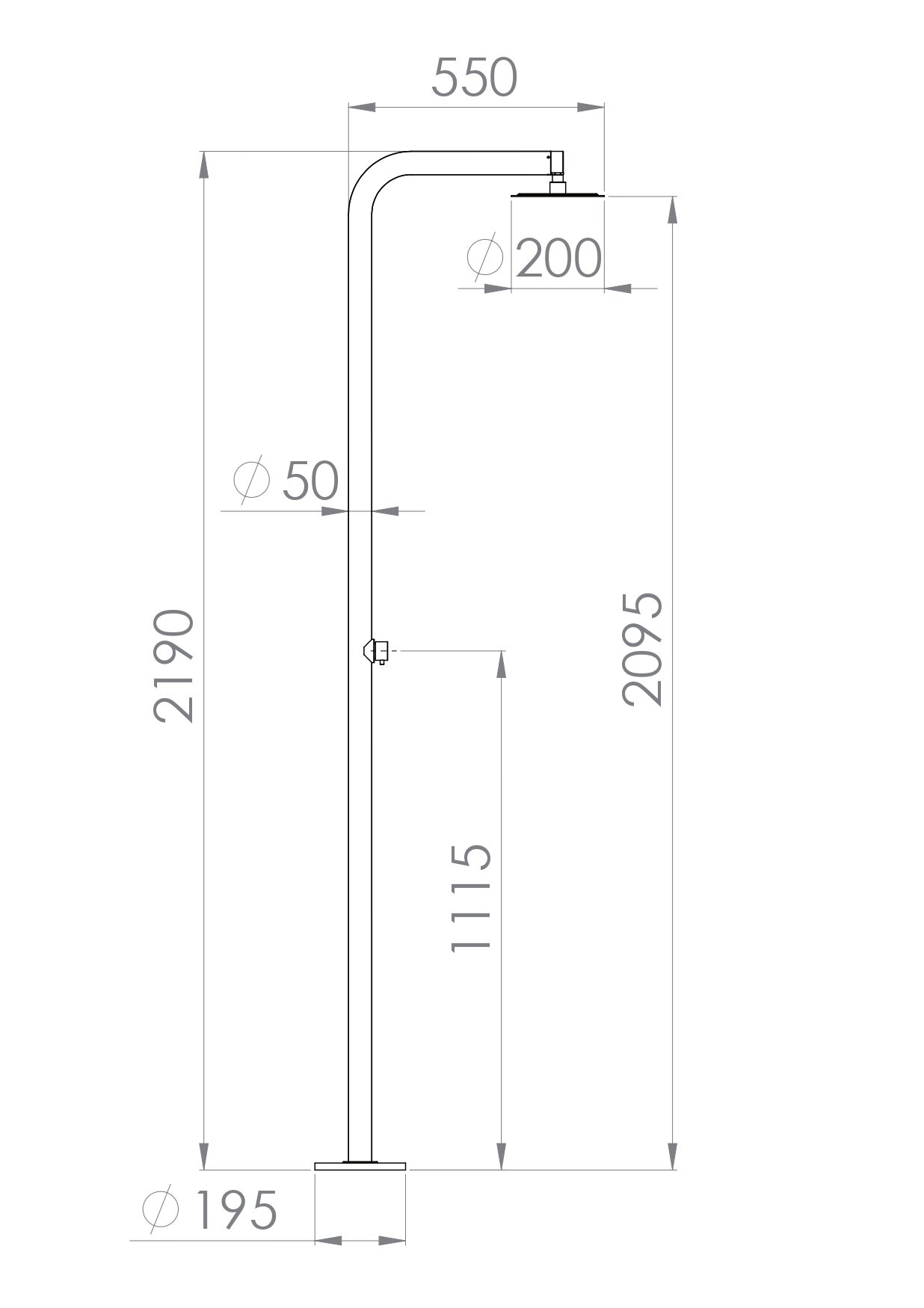 A Mercurio hideg vizes zuhany zuhanyfejjel egy egyszerű, mégis elegáns megoldás azok számára, akik egy frissítő zuhanyra vágynak a szabadban. A fix zuhanyfej biztosítja az egyenletes vízáramlást. AISI 316 rozsdamentes acélból készült kültéri zuhany.