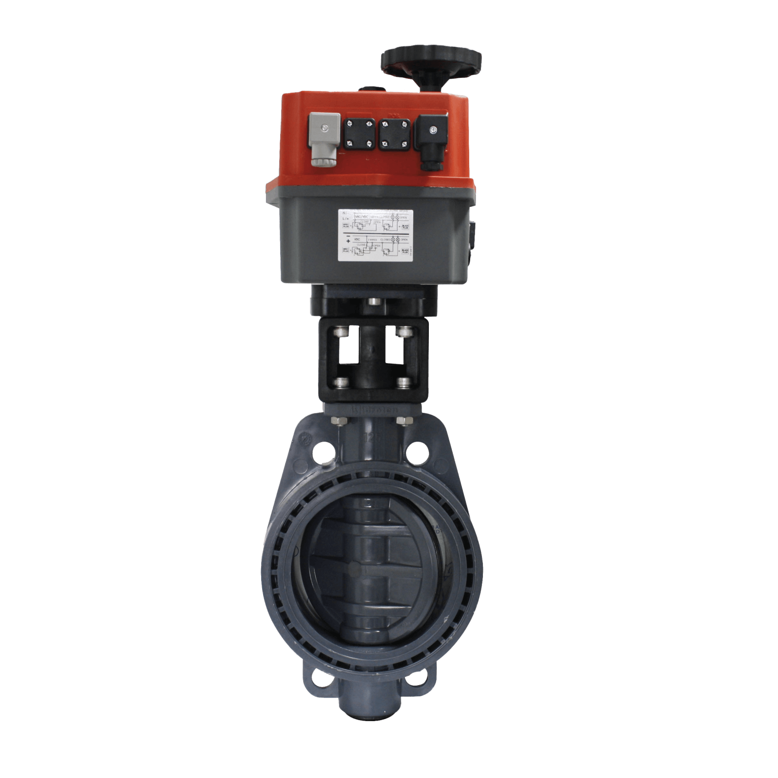 Kiváló minőségű, könnyű motoros pillangószelep karimákkal PVC-U nyomócsövekhez. Kiemelkedő korrózióállóság és kopásállóság jellemzi, beszerelése egyszerű és gyors.