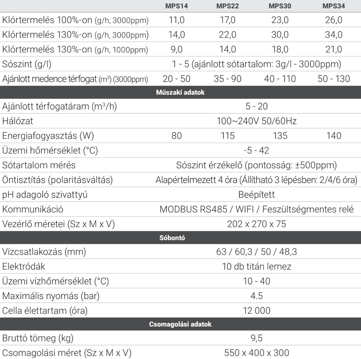 – Sószint: 1 – 5 g/l (ajánlott sótartalom: 3 g/l – 3000ppm)