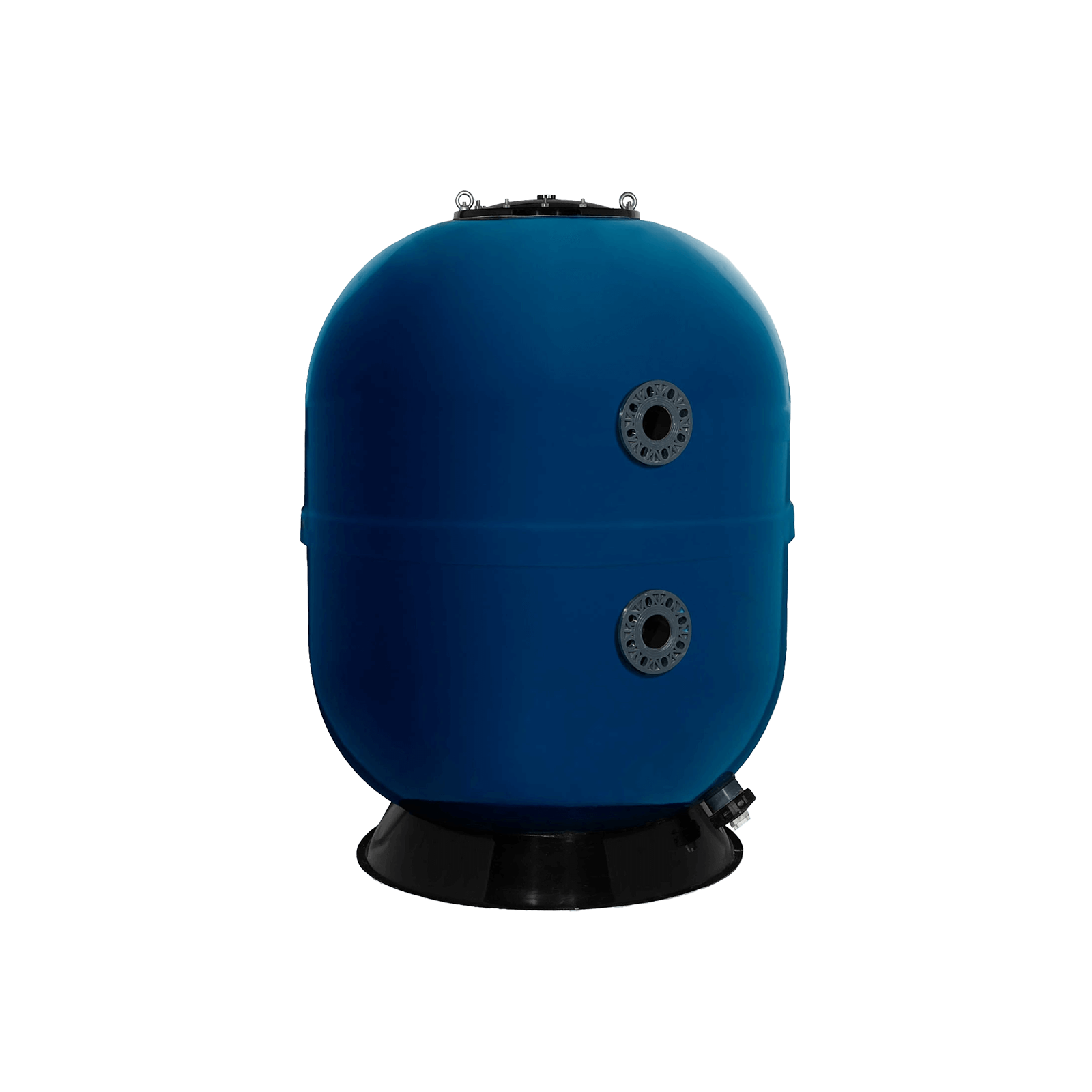 Üvegszál erősített szűrőtartály közületi medencékhez, iparági szabványoknak megfelelő kialakítás, UV sugárzás elleni védőréteg, kollektor karos kialakítás.