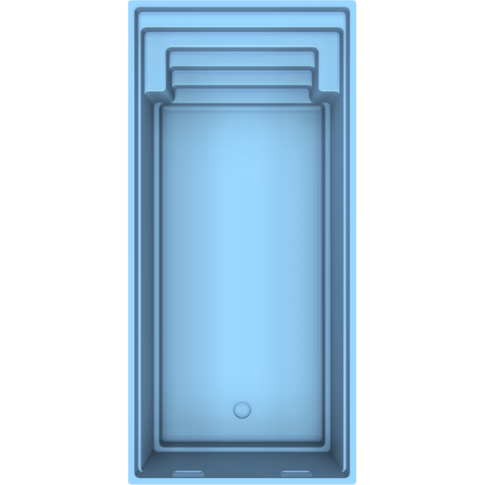 1-2-3. réteg: egy 3 dimenziós multicolor medencefelület, mely egy fröccstechnológiával egymás utáni rétegben felvitt Gelcoat (első poliészter gélréteg) réteg
