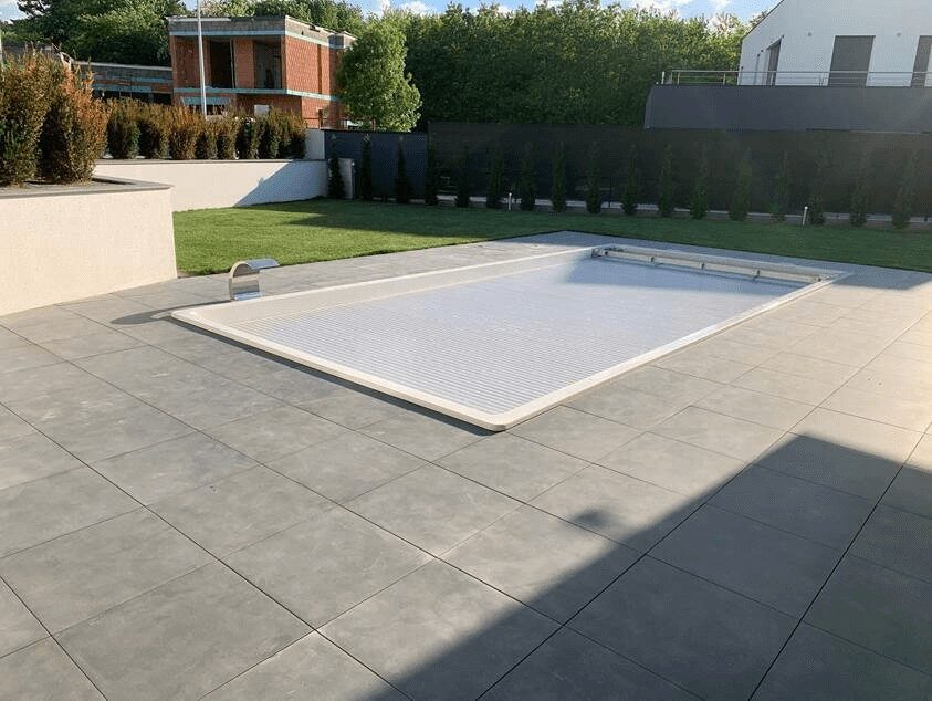 Redőnylamellás medence takarás a medencetakarók csúcsa. Használatát tekintve igen kényelmes, hiszen egy gombnyomással a medence letakarható teljesen automatán.