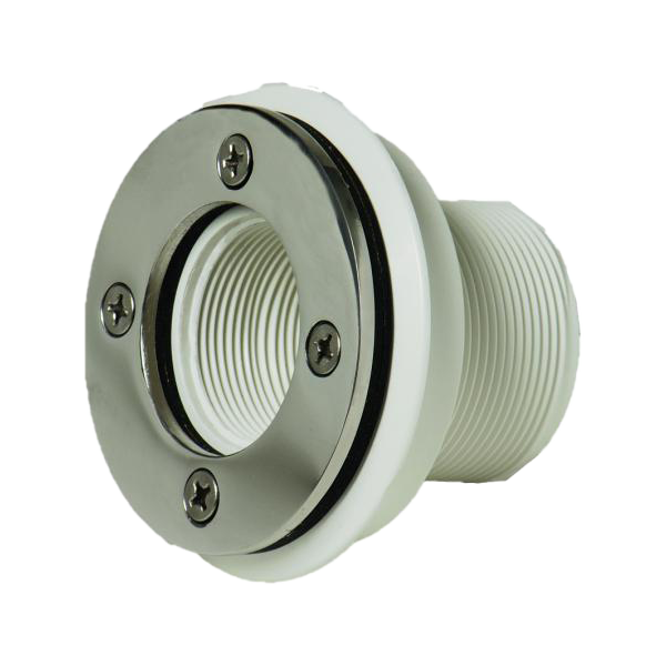 Kiváló minőségű medence falba építhető porszívó csatlakozó, ragasztható, fehér ABS anyagból készült, inox előlappal, fóliás medencékhez. 1 ½” menetes porszívó csatlakozás.