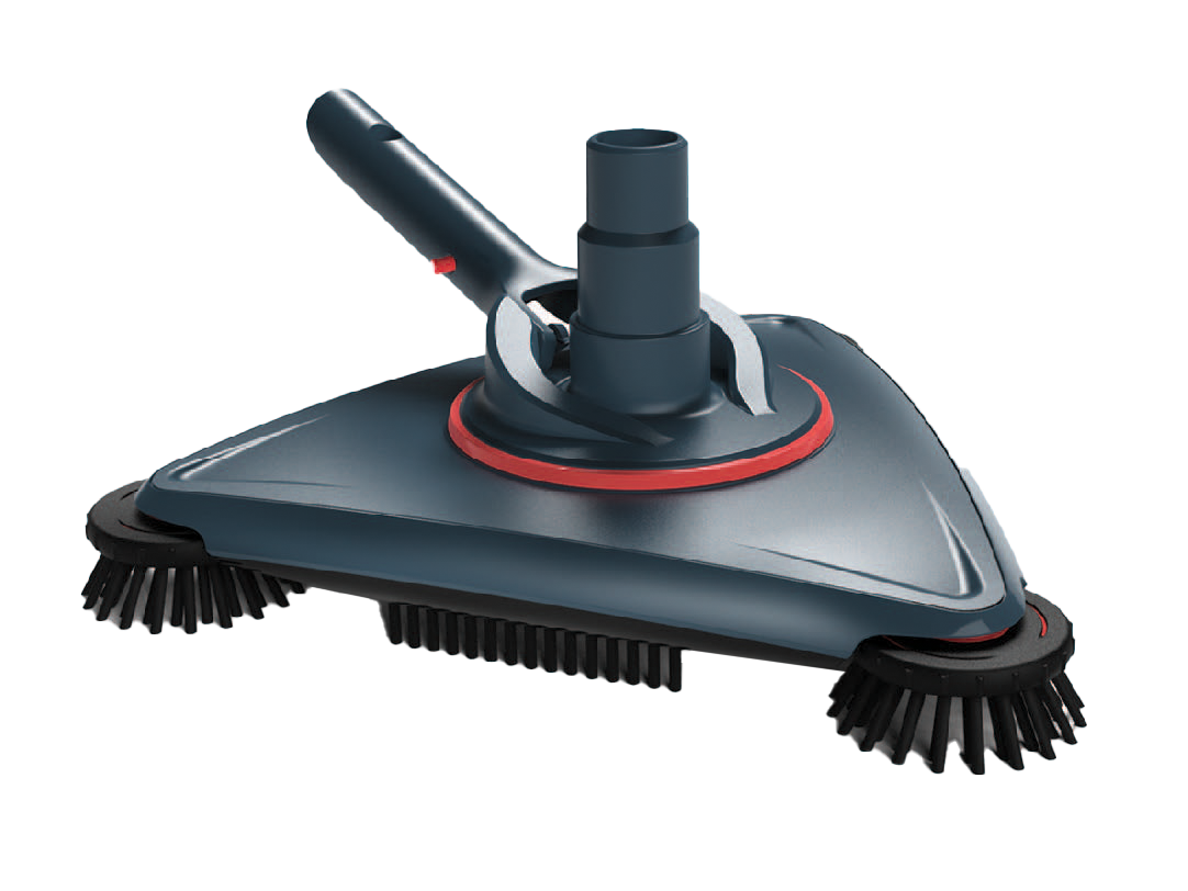 A forgó platform megakadályozza a tömlő összegabalyodását. A kiegészítő súly biztosítja az optimális érintkezést a talajjal. Háromszög alakjának köszönhetően ez a porszívó a nehezen tisztítható részeket is könnyedén eléri, például a medence sarkokat.