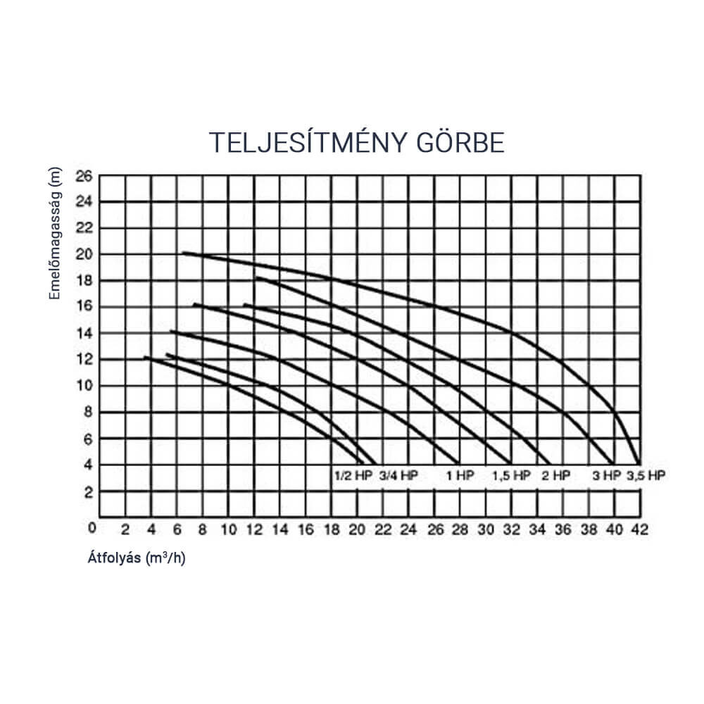 – Szívó és nyomó csatlakozása: 1/2 HP-ig D50-es csatlakozás, az afeletti méretek D63 hollanderes csatlakozásúak.