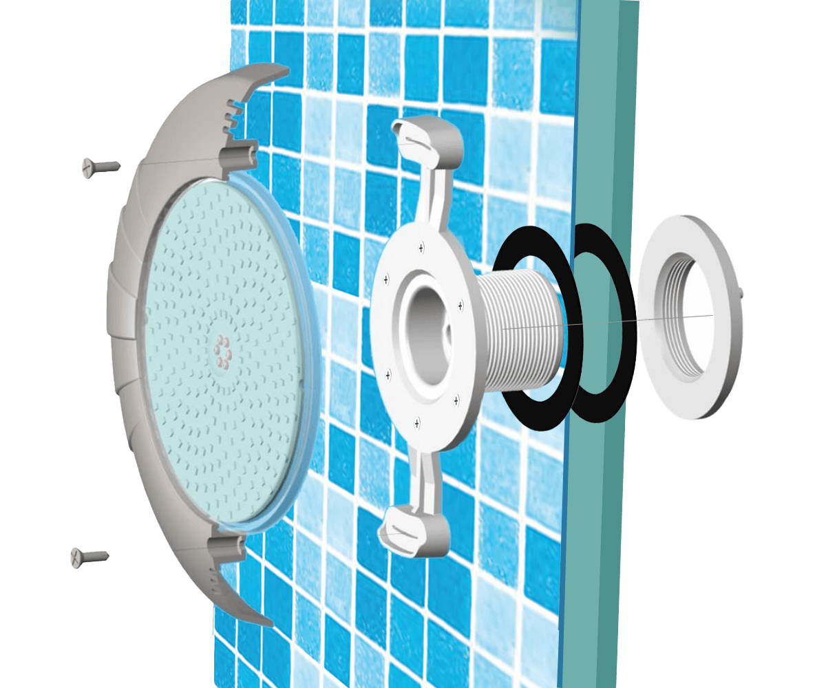 Kíváló minőségű Gemas szerelő készlet exkluzív LED izzós falon kívüli víz alatti világítás beszereléséhez. Paneles medencéhez.