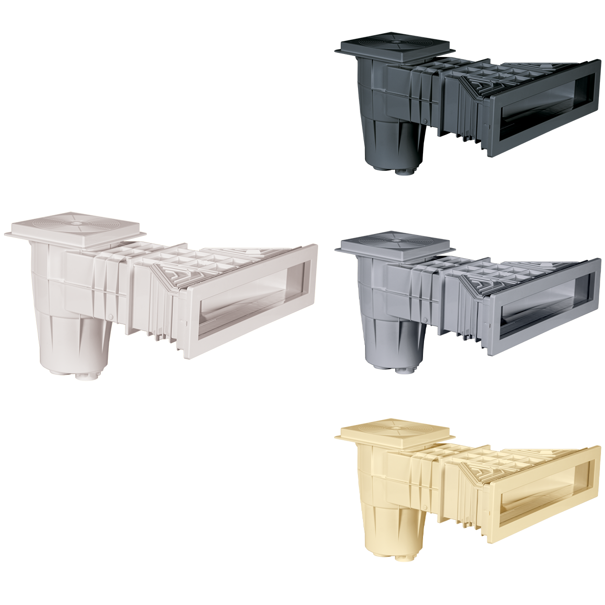 Minden szkimmer modell ABS műanyagból készül, szkimmer ajtóval és rögzítő mechanizmussal ellátva a szennyeződések visszaáramlása