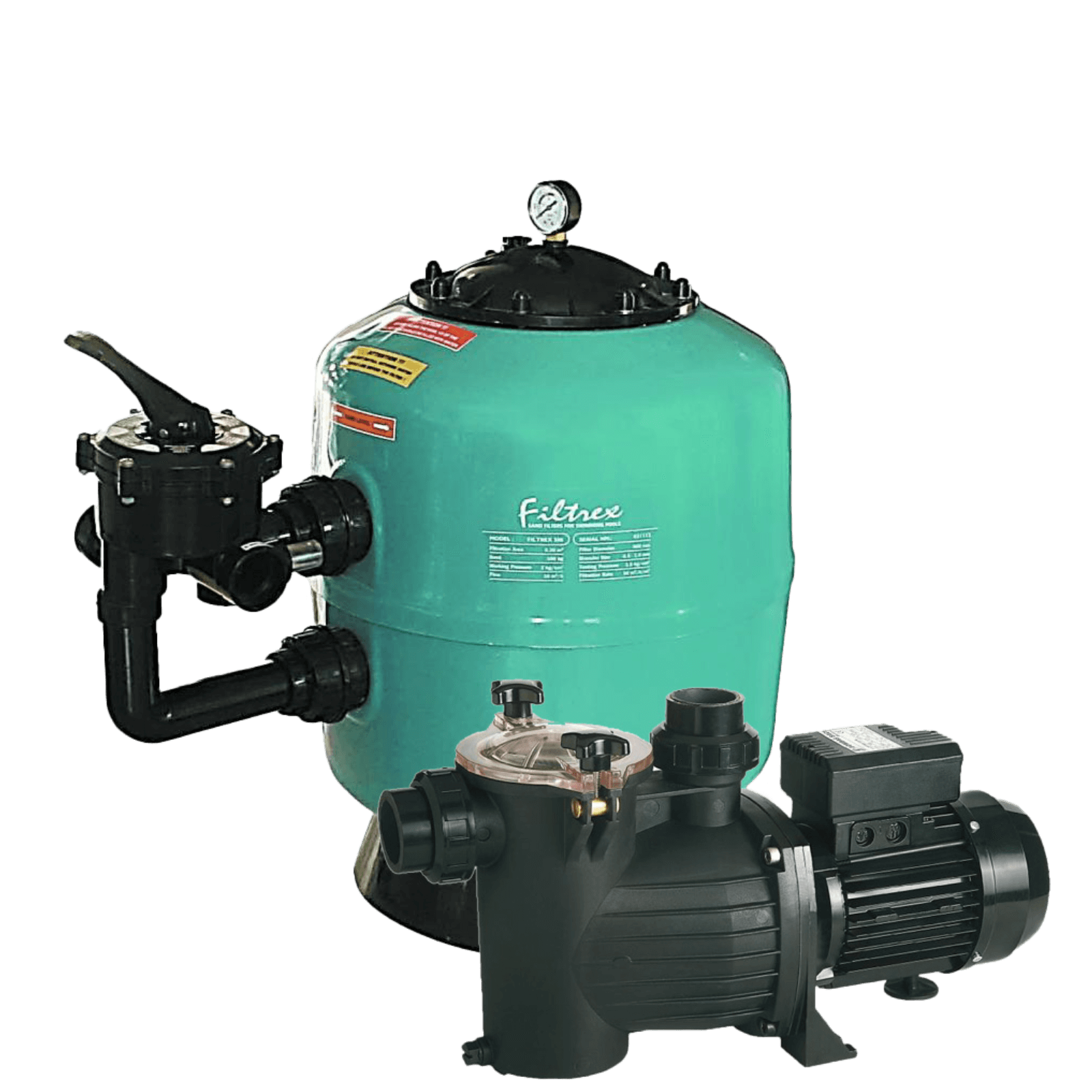 Megbízható, üvegszál erősítésű laminált poliészter Filtrex szűrőtartály, hatfunkciós oldalszeleppel és nyomásmérő órával. Opcionálisan vinilészter bevonattal. Tartozéka a hatfunkciós oldalszelep és a
