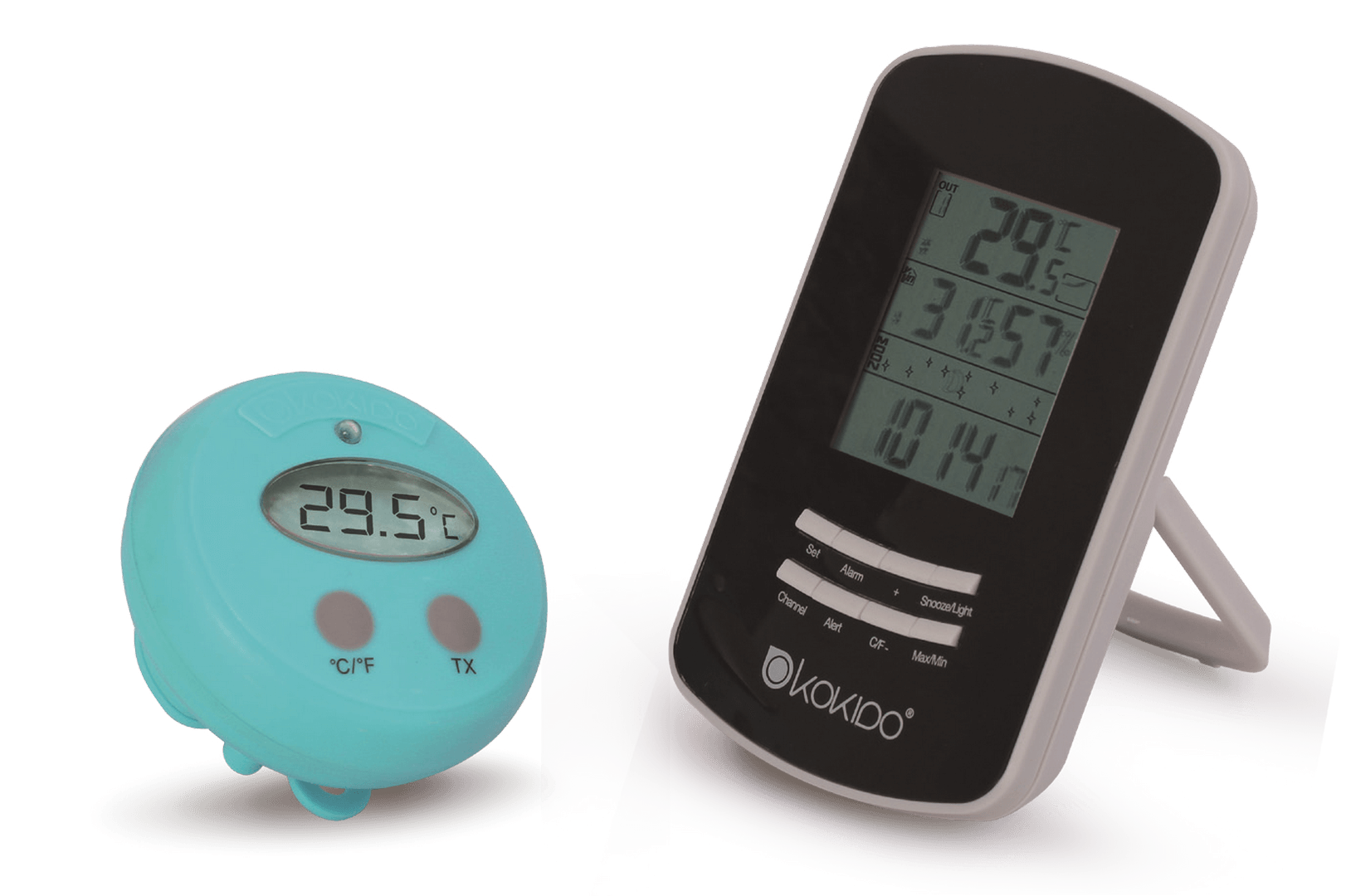 Az érzékelő a medencében lebegve méri a víz hőmérsékletét, és kommunikál a bázisállomással. A bázisállomás megjeleníti a beltéri hőmérsékletet és páratartalmat, a kültéri medence vízhőmérsékletét és a hőmérsékleti változásokat, a pontos időt, és még a holdfázisokat is.