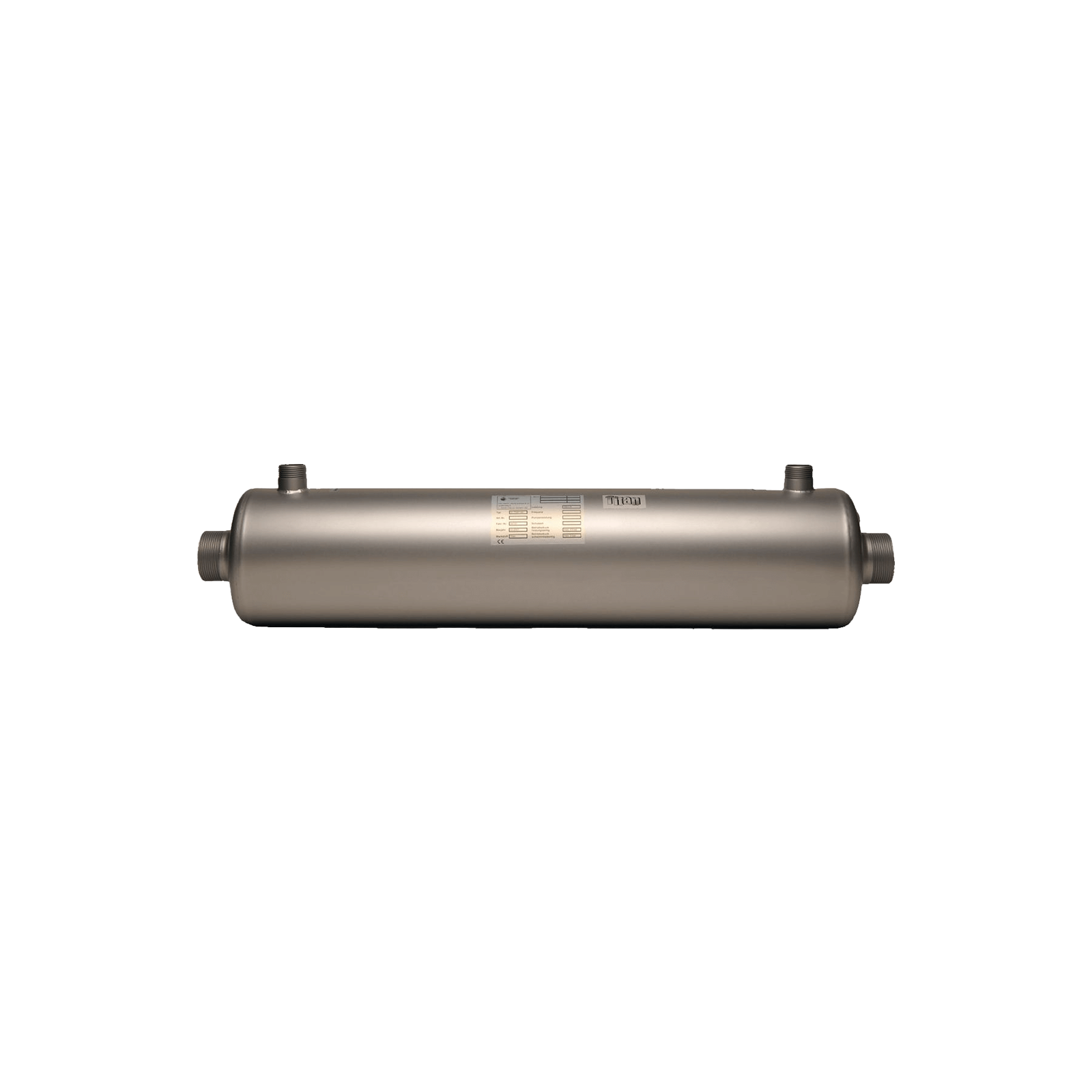 Víz/víz hőcserélő, a megszokott prémium kivitelezéssel és gondossággal, a legkorszerűbb hegesztéssel megmunkálva. Ez a prémium hőcserélő kompromisszumok nélküli korrózióállósággal rendelkezik, még a medencevíz magas sótartalma esetén is, ezért tengervízálló. Ezek a hőcserélők maximális energiahatékonyságot kínálnak minimális nyomásveszteség mellett. Mint minden tekercscsöves hőcserélőt, ezeket is be kell építeni a fürdővízkörforgásba, vagy közvetlenül, vagy a bypass-rendszeren keresztül.
