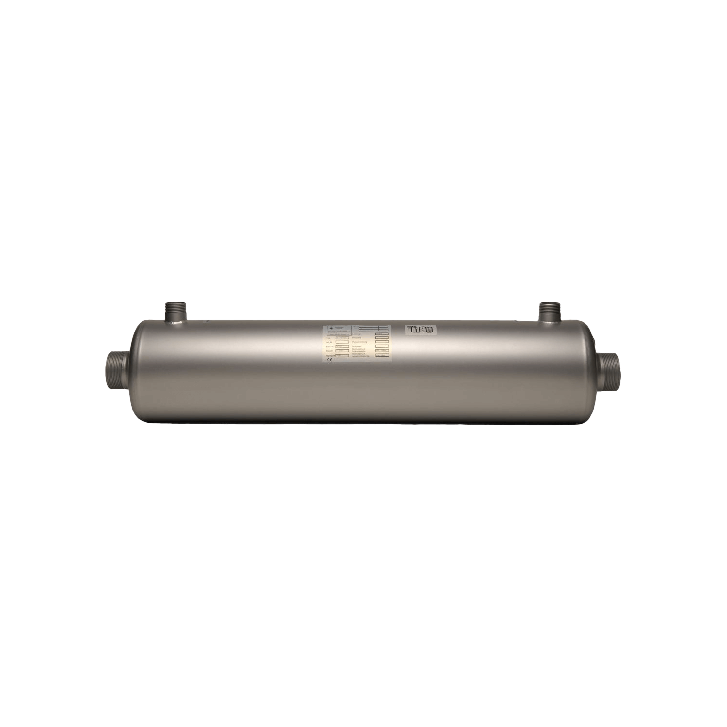 Víz/víz hőcserélő, a megszokott prémium kivitelezéssel és gondossággal, a legkorszerűbb hegesztéssel megmunkálva. Ez a prémium hőcserélő kompromisszumok nélküli korrózióállósággal rendelkezik, még a medencevíz magas sótartalma esetén is, ezért tengervízálló. Ezek a hőcserélők maximális energiahatékonyságot kínálnak minimális nyomásveszteség mellett. Mint minden tekercscsöves hőcserélőt, ezeket is be kell építeni a fürdővízkörforgásba, vagy közvetlenül, vagy a bypass-rendszeren keresztül.