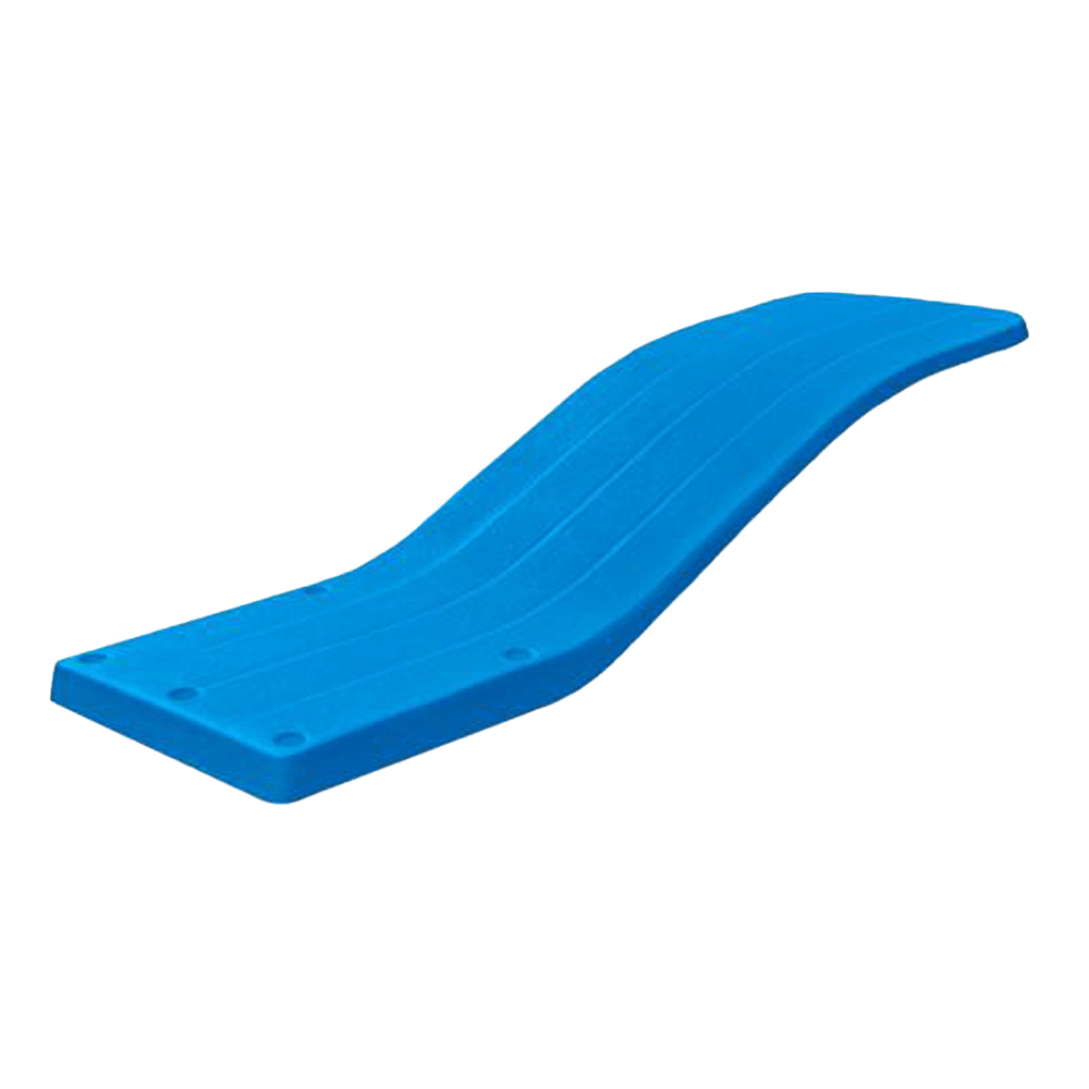 Nagy szélességű ugródeszka üvegszál és poliészter ötvözetéből, csúszásmentes felülettel. Közületi vagy magán medencékhez egyaránt használható.
