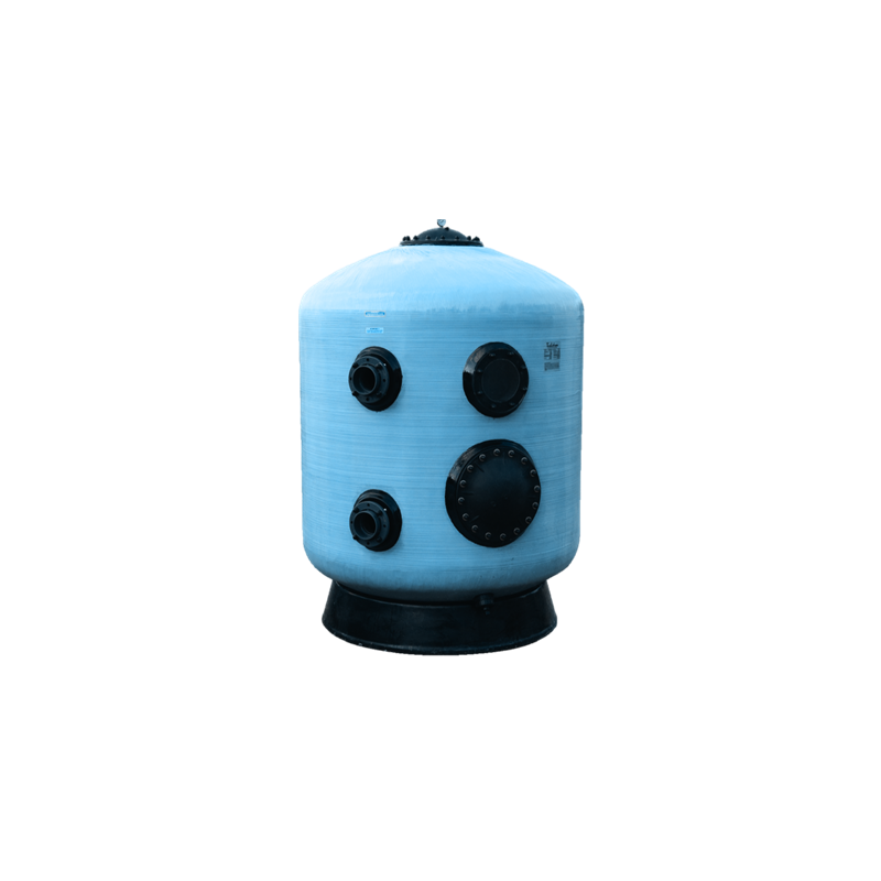 Üvegszál erősítésű MSZ 15236:2013 szabványnak megfelelő tekercselt üvegszál erősítésű szűrőtartály közületi medencékhez, figyelőablakkal, vízgyűjtő tölcsérrel. Tartozéka a nyomásmérő óra és légtelenítőszelep. A szűrőágy szűrőlappal van szerelve.